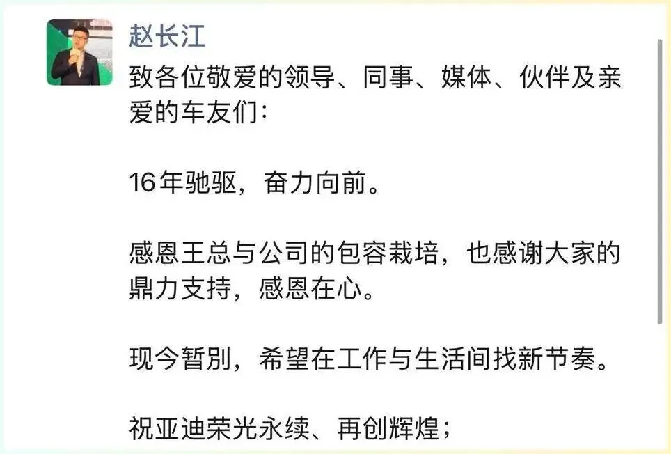 在比亚迪体系内,赵长江从来不是曝光度最高的人,却始终是最“好用”的那一类。
