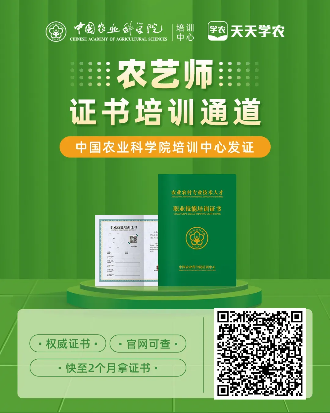 所以,证书将是你能力的证明,不管是就业还是指导别人,有了这项资质会让你在农业路上走得更稳更远。