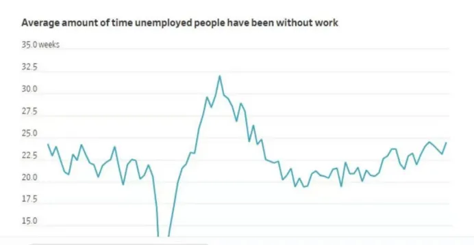 不过,招聘活动已明显放缓。如今失业的人往往更难找到新工作,失业时间也更长。根据美国劳工部数据,去年12月的平均失业时长为24.4周,而2022年12月为19.4周。