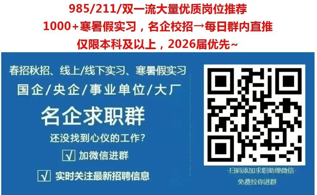 3.以上招聘信息由用人单位提供或来源于官网,如有误,请联系我们修改或下架。识别下方二维码 添加编辑微信