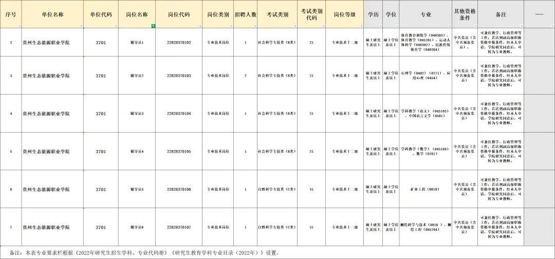 1. 贵州生态能源职业学院2026年公开招聘事业单位工作人员岗位及要求一览表.xlsx