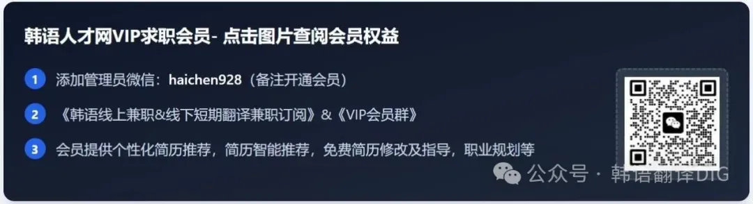 开通《韩语VIP求职会员》获取联系方式&每日韩语兼职订阅&免费求职指导&名企内推机会;会员详情权限及在线开通:http://ps.hanyuhr.com