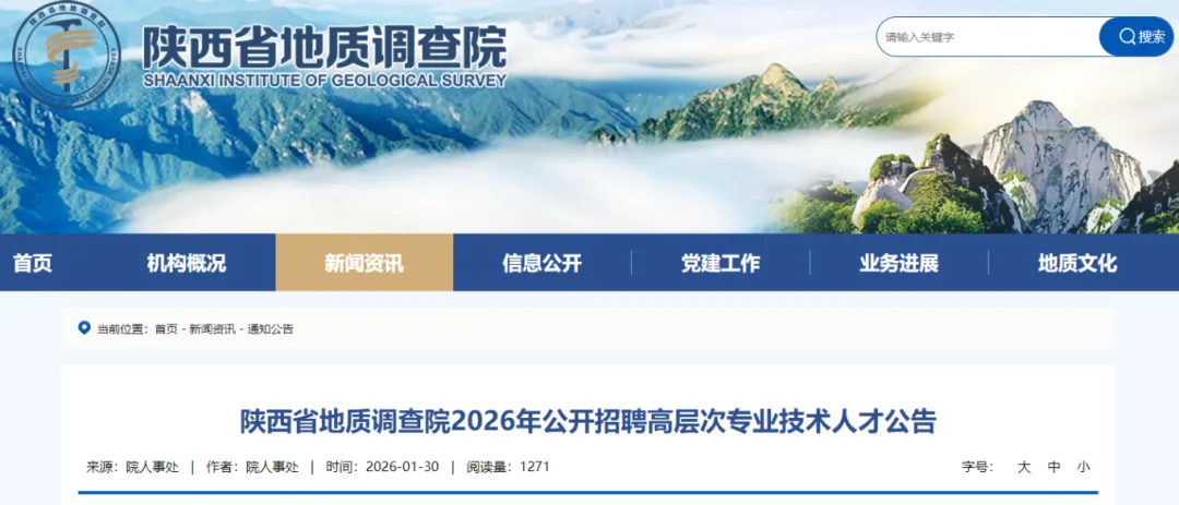 根据《事业单位人事管理条例》《陕西省事业单位公开招聘工作人员实施办法》等相关规定,陕西省地质调查院2026年公开招聘高层次专业技术人才7名。现将有关事项公告如下。 一、招聘条件 (一)应聘基本条件 1.具有中华人民共和国国籍。 2.拥护中华人民共和国宪法和法律法规,拥护中国共产党领导和社会主义制度,品行端正,遵纪守法。 3.年龄为18周岁以上,40周岁以下(1985年2月6日至2008年2月5日期间出生)。 4.具有招聘岗位所需的学历、专业或技能条件。其中,学历为国家教育行政主管部门认可的大学本科及以上文化程度;专业以国家教育行政主管部门公布的研究生、本科专业目录为准。留学归国等应聘人员所学学科专业与资格条件要求的学科专业相近但不在选定参考目录的,结合所学课程、研究方向等进行审查。毕业证、学位证以及招聘岗位所要求的各类证书须于2026年3月31日前取得。 5.适应招聘岗位要求的身体条件。 (二)不符合报名应聘的主要情形 1.曾因犯罪受过刑事处罚或曾受过开除处分的;在立案审查期间或未解除党纪、政纪处分的。 2.曾在公务员招录、事业单位公开招聘中被认定有舞弊等严重违反纪律行为的。 3.现役军人和在读的非2026年应届毕业生,以及在读的非2026年应届毕业生用以往取得的学历报名的。 4.事业单位人事管理需要回避的。 5.事业单位工作人员、公务员(含参照公务员法管理单位工作人员)有服务年限规定且服务年限未满的;特岗教师、“三支一扶”人员在服务期内的,服务期计算时间截至2026年3月31日。 6.失信被执行人。 7.法律、法规规定不符合本次招聘要求的。 (三)招聘岗位