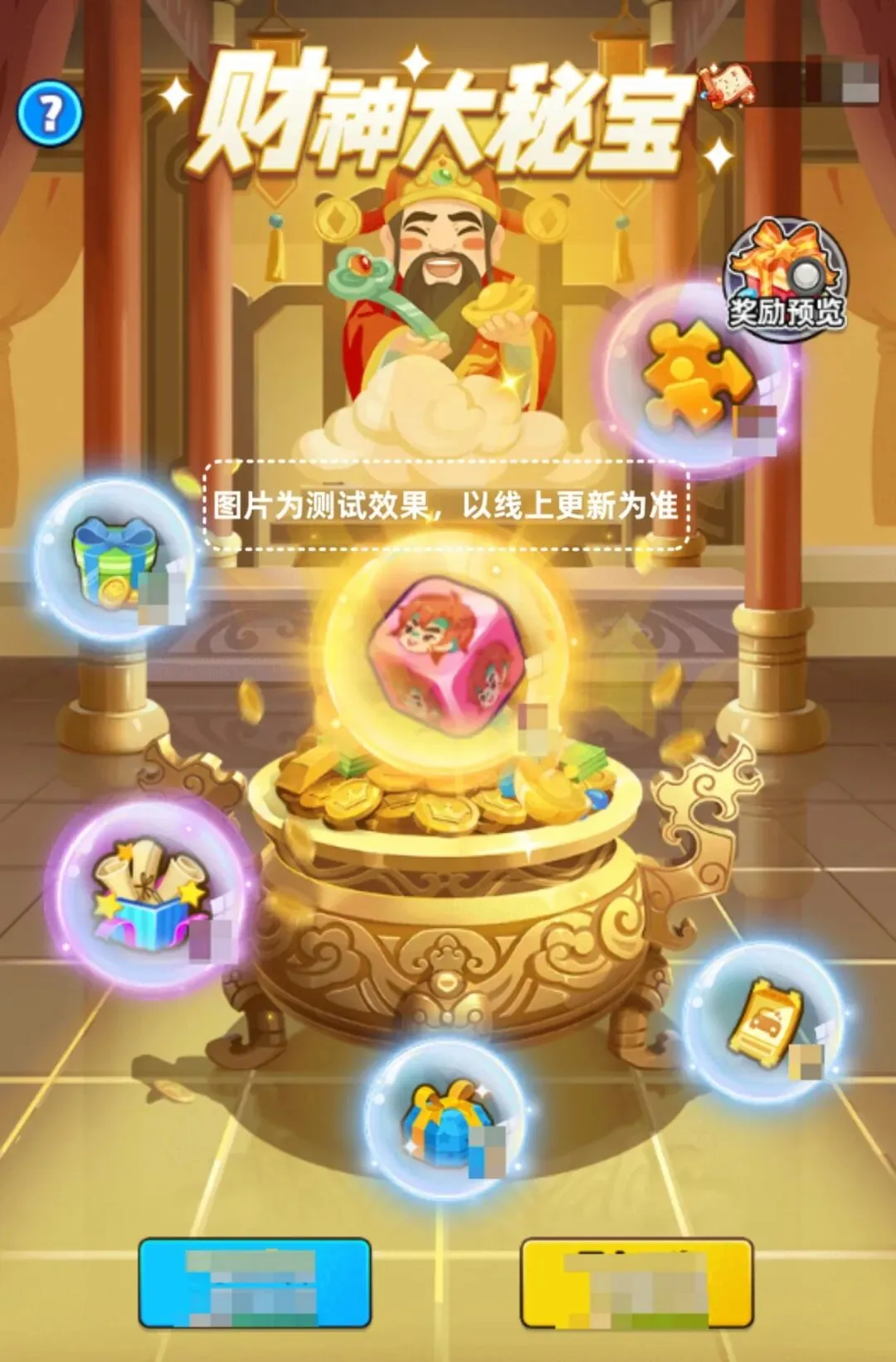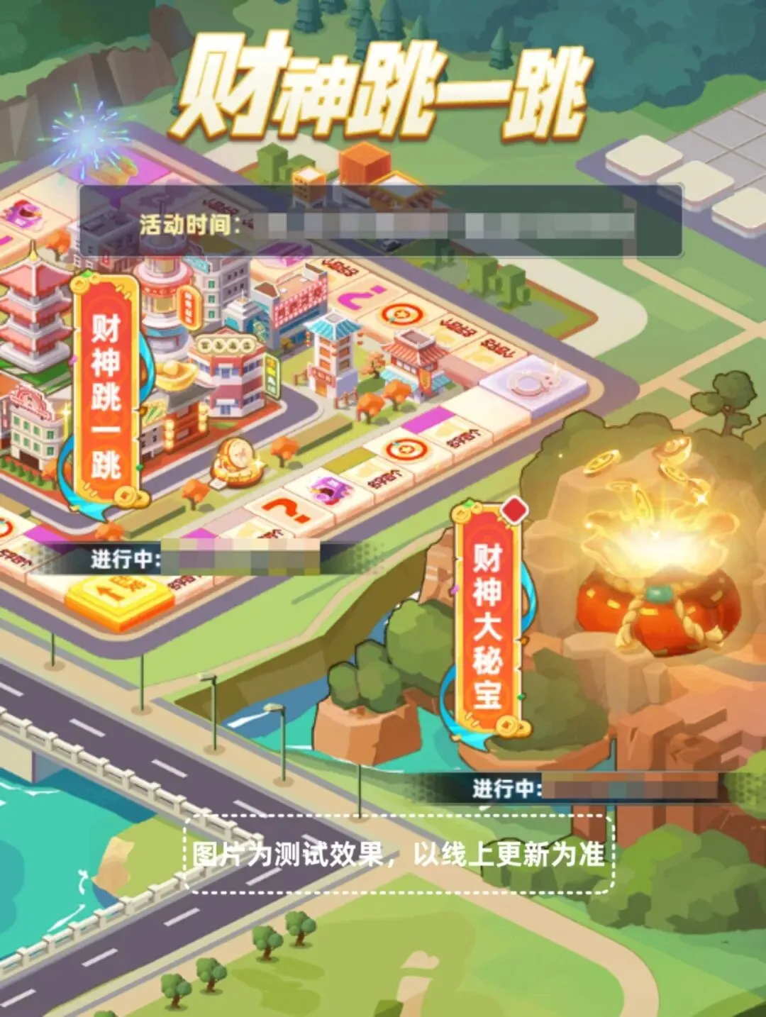 财神跳一跳:活动中分布着不同类型事件的格子,老板每次停留在格子上,或经过路上的小人,即可触发对应事件。