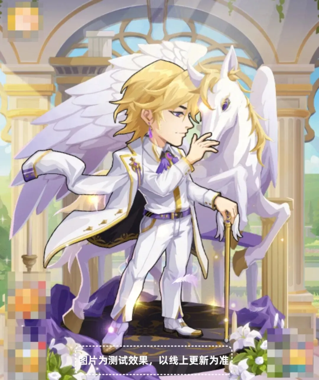 圣洁灵驹主角皮肤、圣洁灵驹头像、马踏祥云头像框、马踏祥云气泡框。
