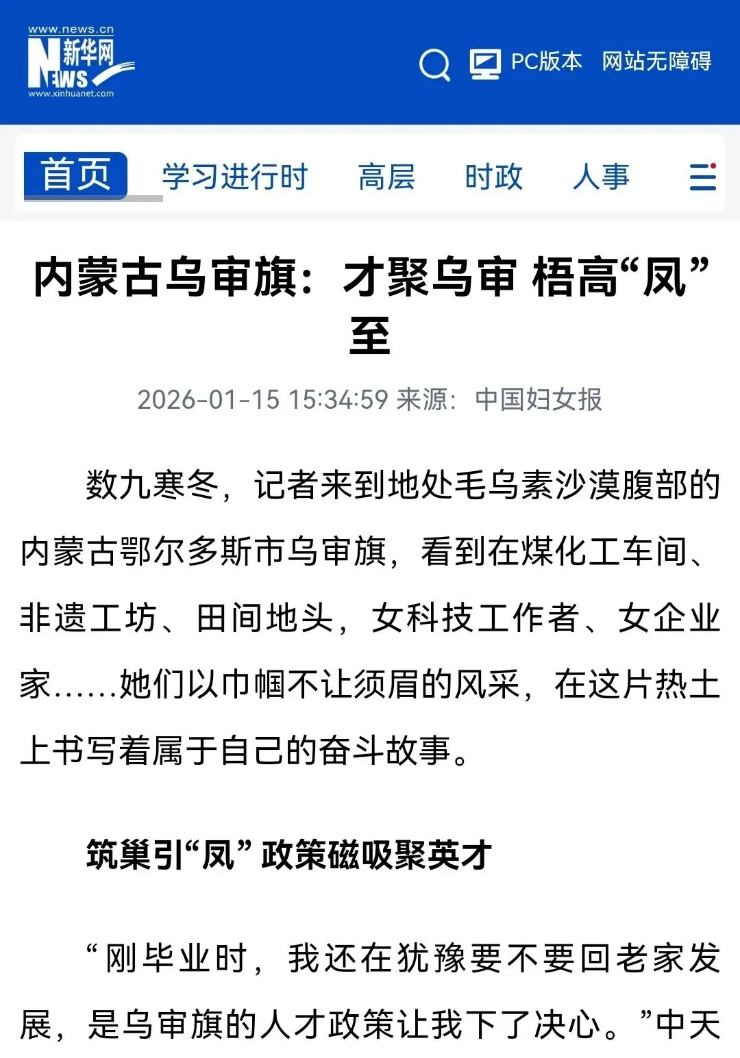 1月15日·新华网+丨内蒙古乌审旗:才聚乌审 梧高“凤”至