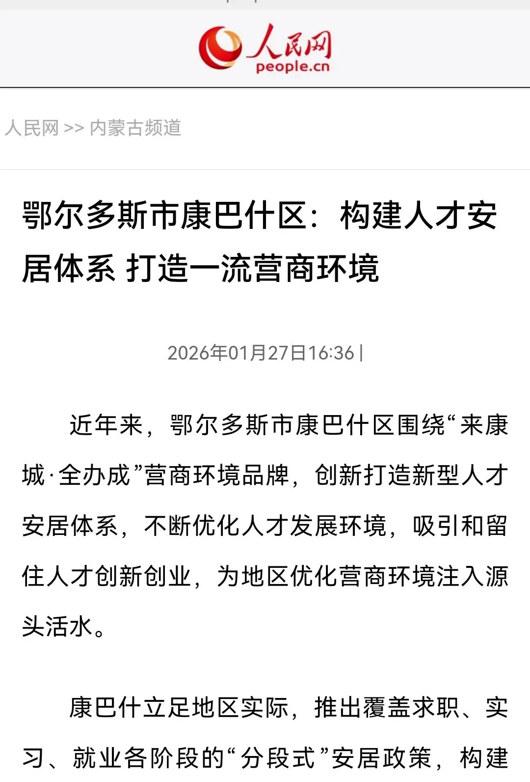 1月27日·人民网丨鄂尔多斯市康巴什区:构建人才安居体系 打造一流营商环境