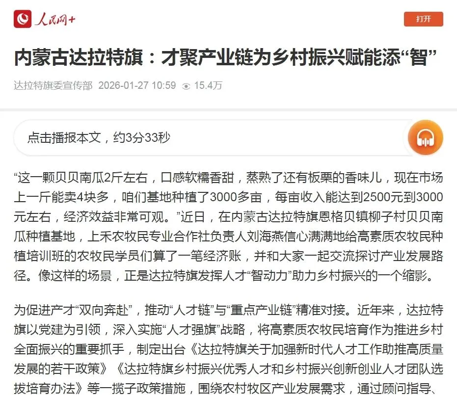 1月27日·人民网+丨内蒙古达拉特旗:才聚产业链为乡村振兴赋能添“智”