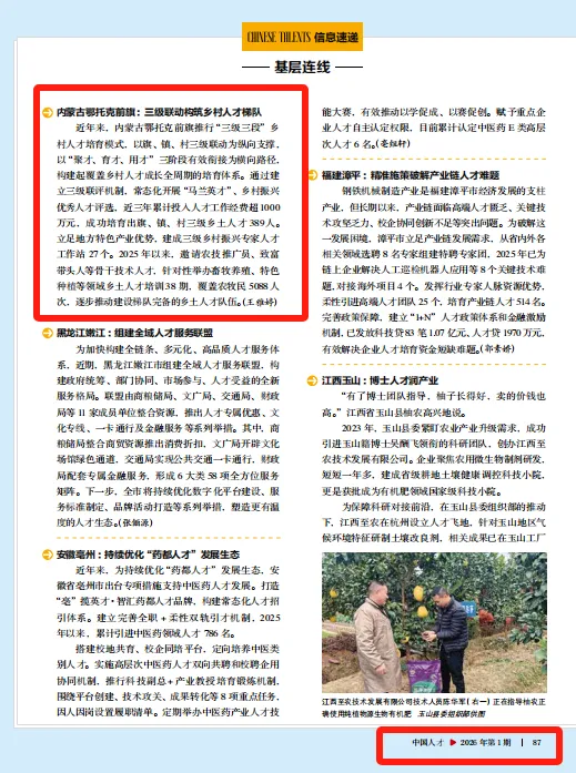 1月·《中国人才》丨内蒙古鄂托克前旗:三级联动构筑乡村人才梯队