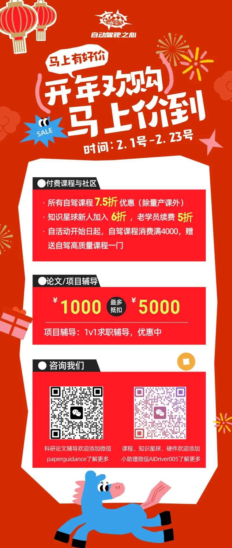 为了更好的帮助大家,自动驾驶之心准备了丰厚的春节优惠活动!本次活动持续时间为2.1-2.23号。