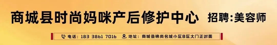 【招聘】商城十月如初•产后修复中心诚聘👩产康师8️⃣名‼️要求:年龄25-45周岁女性,形象好,沟通能力佳,有3年美容美体经验即可/带薪培训上岗‼️待遇:5000-10000👩产康咨询顾问2️⃣名‼️要求:从事过美容门店管理者优先,形象好,沟通舒畅‼️待遇:6000-12000电话📞:183********(李经理)地址🏠:锦尚名城B区一店崇福公园西关风情对面二店