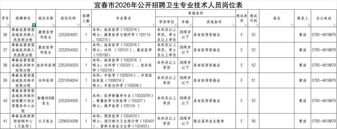 2.宜春市2026年公开招聘卫生专业技术人员岗位表