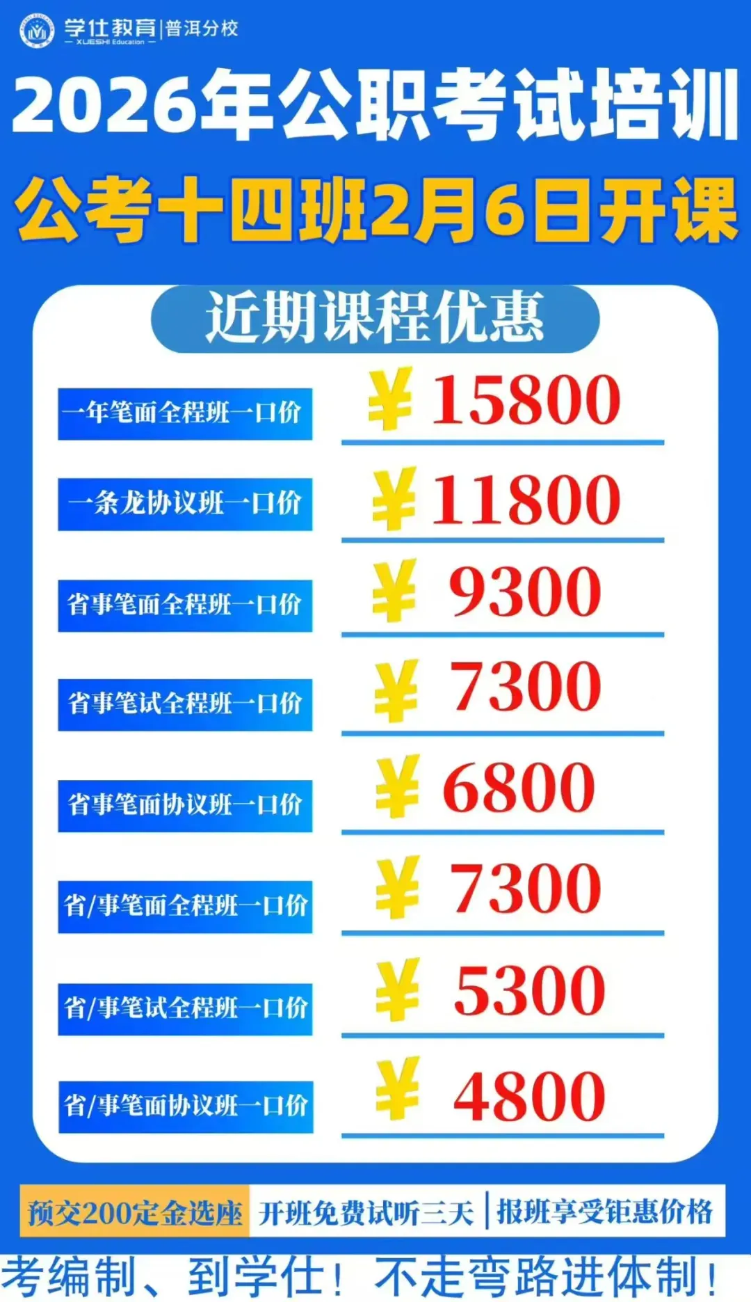 上课地点:普洱新天地大兴量贩二楼学仕教育