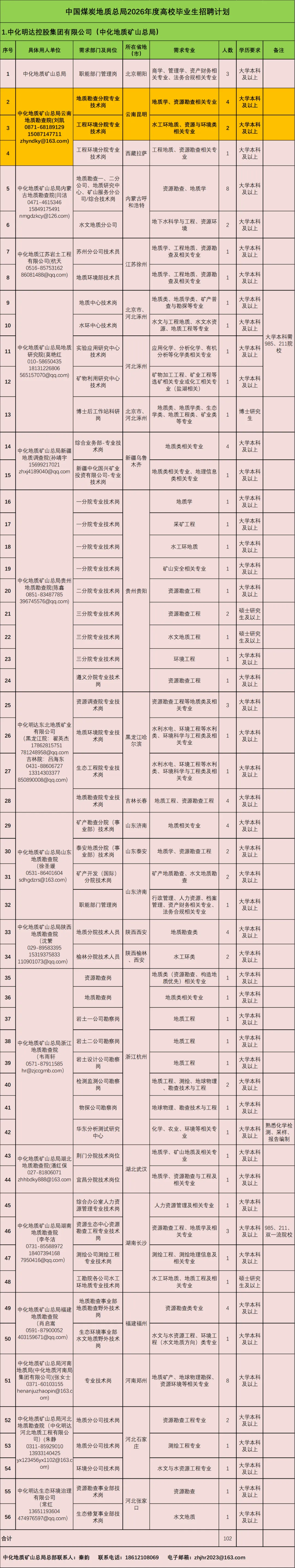 2.中国煤炭地质总局2026年度高校毕业生招聘计划