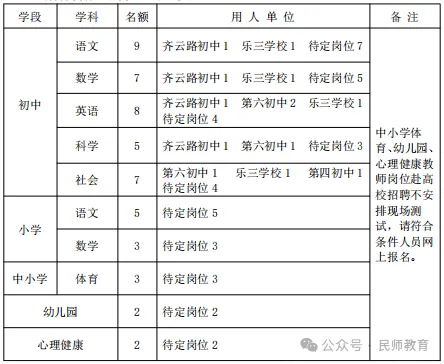 (一)中小学文化课及体育学科教师岗位: