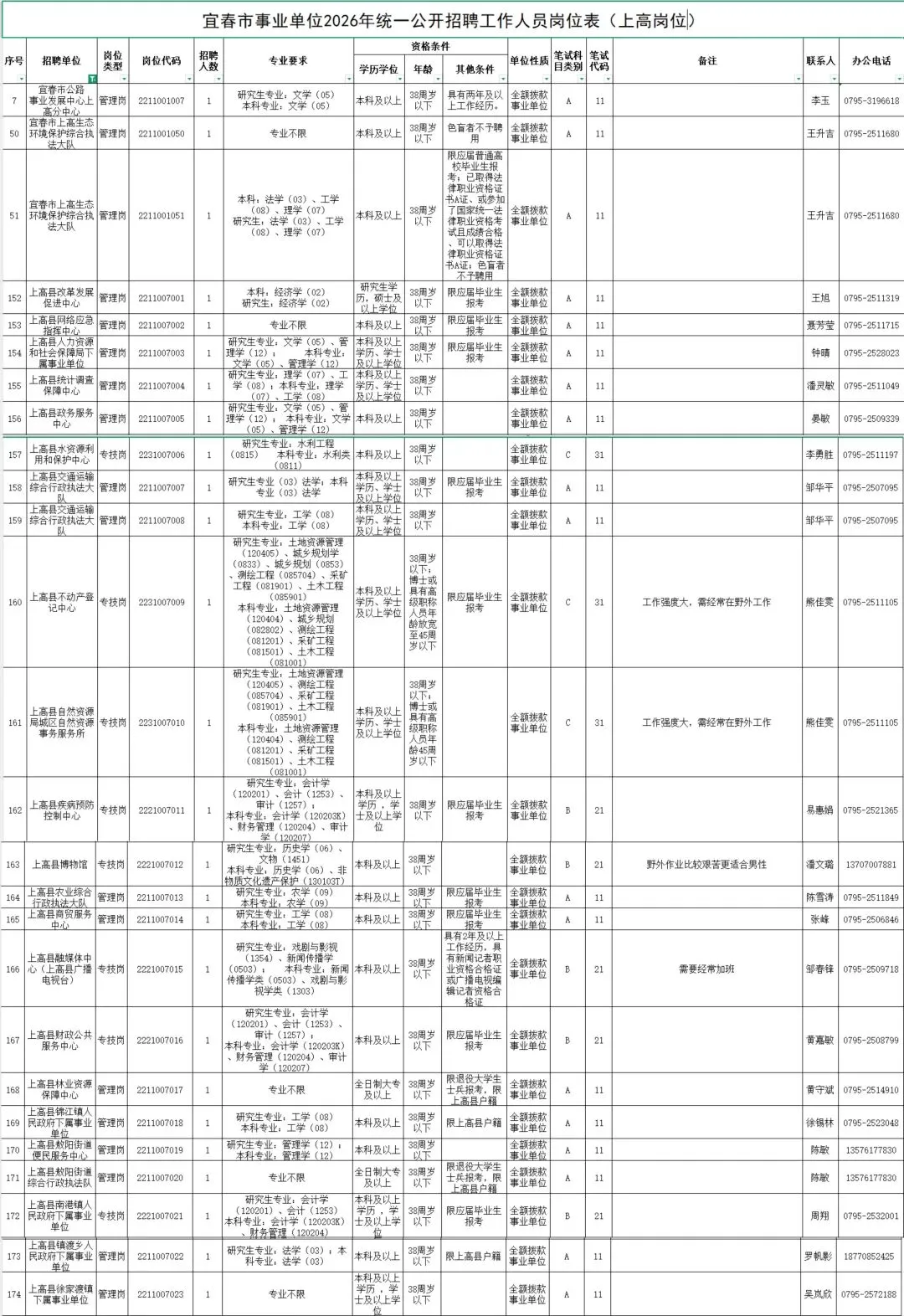 1.宜春市事业单位2026年统一公开招聘工作人员岗位表