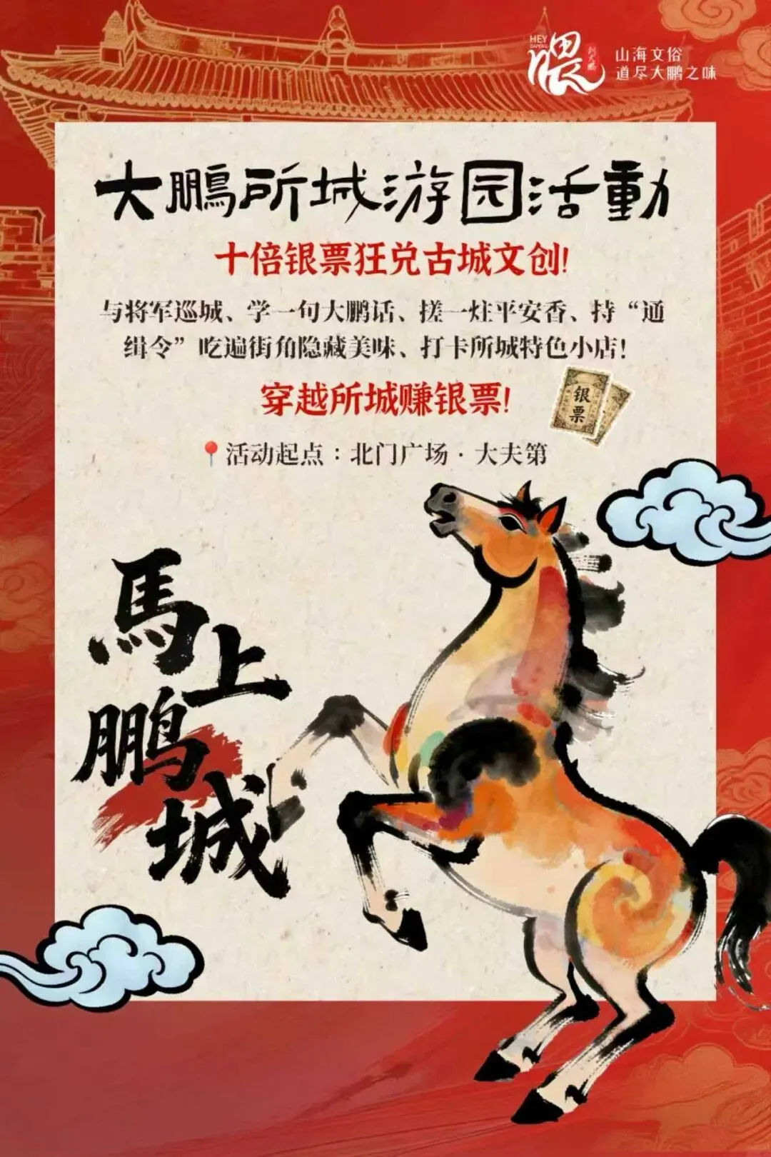 🧧机缘:每位游城官人皆可领取 “洪武红包盲盒” 一份,内藏数额随机的 “大鹏所城银票”,此为尔等今日闯荡江湖之本钱!银票叮当响,运道暗中藏,且看诸位能否化身所城锦鲤?