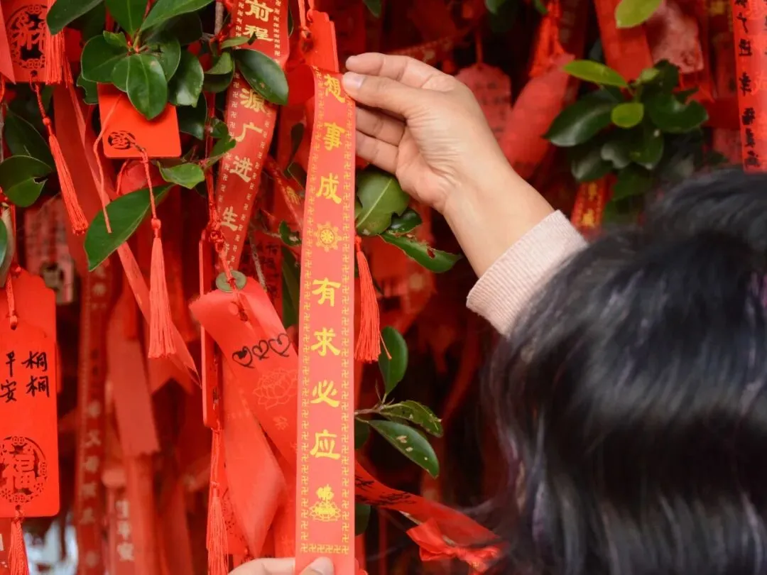 📍凤凰花开:摸一摸百年老树斑驳树干,系愿于枝,古树灵犀一动,银票似红叶翩跹而来。