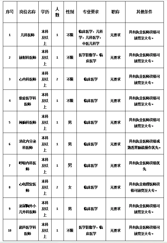 (三)面试时间及所需材料:资格审查通过后,即组织面试,时间以正式通知为准,不入围者,不另行通知。面试时需携带身份证、毕业证、执业证、资格证等原件进行核验。