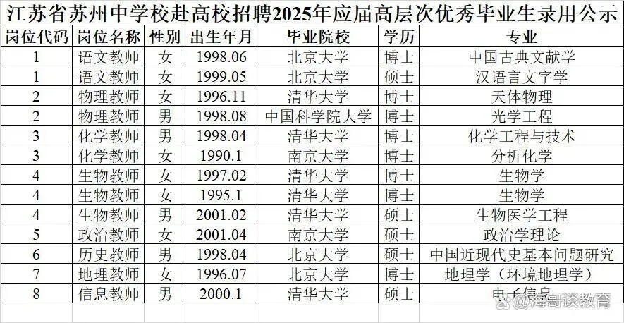 最近几年,但凡看到初高中老师招聘,基本都是在上映名校秀(海安中学除外)。2025年的深圳,2025年的苏州。
