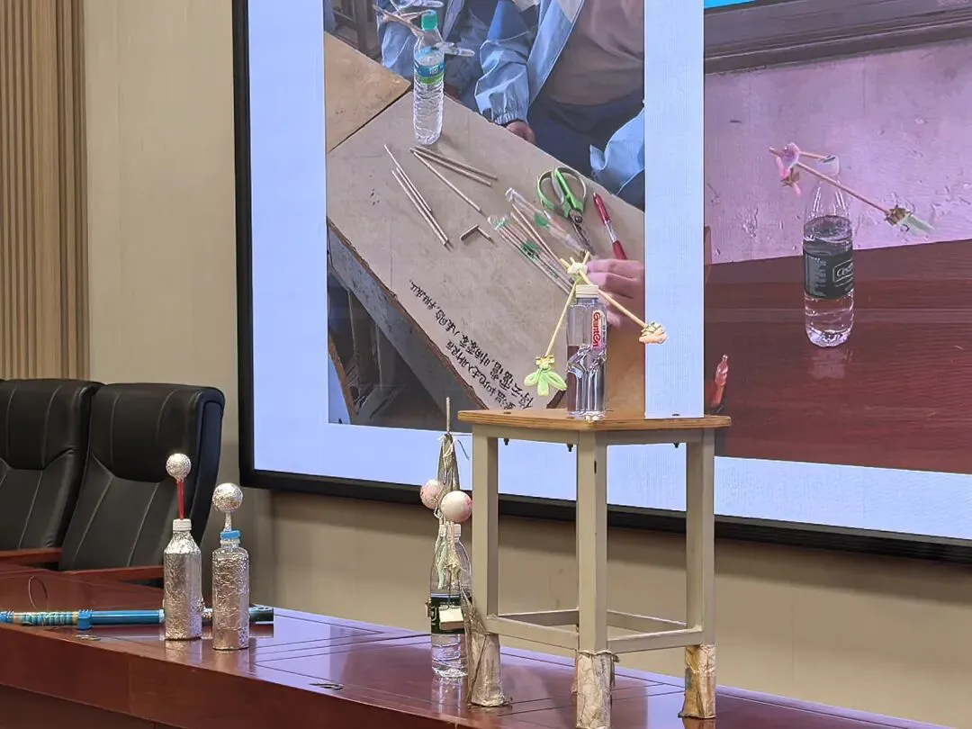 物理:邹丹老师指导的“趣味物理实验”学习小组以“神器的平衡”“自制莱顿瓶”两个实验为主体,向大家展示了他们的收获。