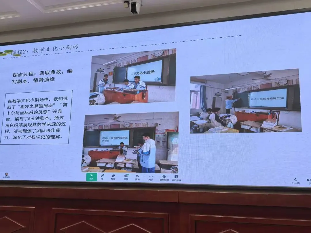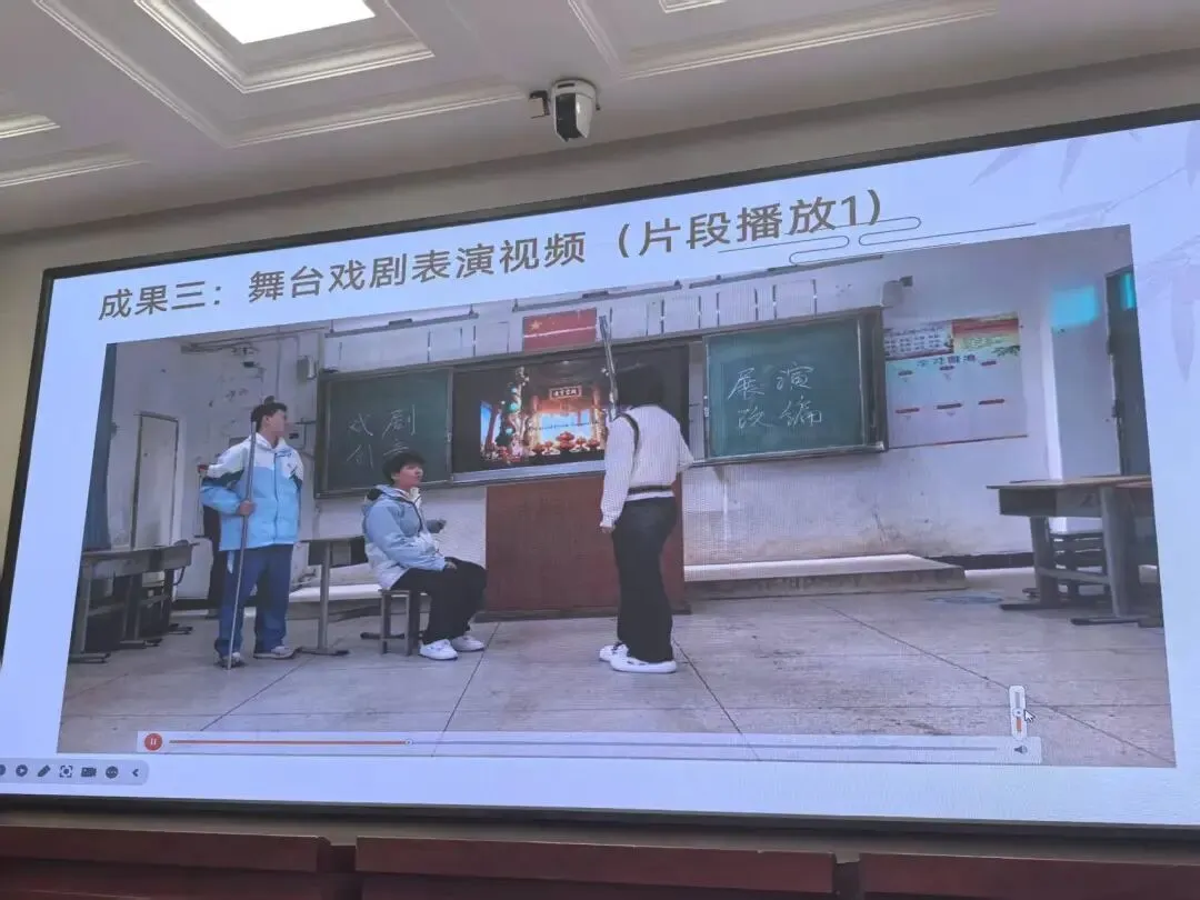 语文:易庭老师指导的“高中语文课本里的短剧文案”小组以《可爱的中国》为例,以视频方式向我们展示了如何运用AI作为辅助来剪辑、演绎短剧;隋桂艳老师指导的“战斗民族的语言及文化”小组分析了俄罗斯语言中的战斗基因,并现场演唱了俄语经典歌曲。