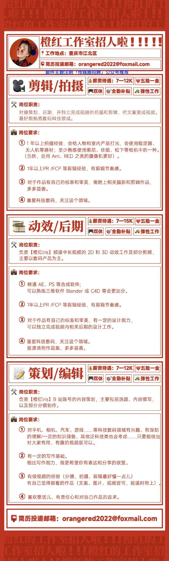 >橙红工作室招聘公告!