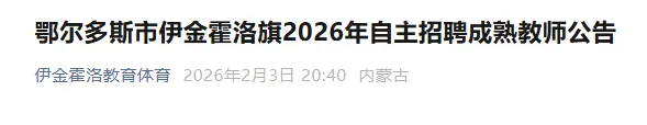 为进一步加强教师队伍建设,全力打造“幸福教育”品牌,推动我旗教育高质量发展,提升地区教育影响力和竞争力,根据《鄂尔多斯市伊金霍洛旗2026年自主招聘中小学幼儿园教师实施方案》,现面向全国自主招聘成熟、骨干和名优教师,具体事宜如下: