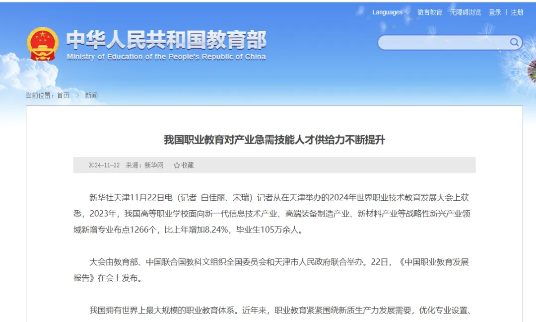 我国职业教育对产业急需技能人才供给力不断提升