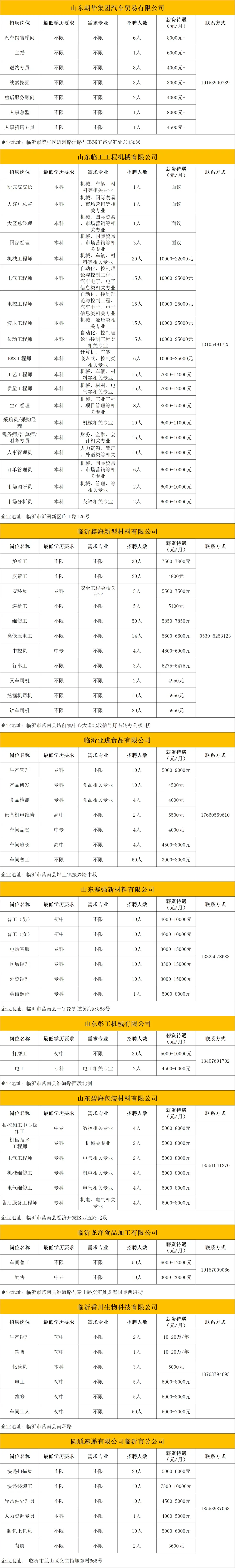 >临沂企业!朝华集团汽贸公司等单位招聘