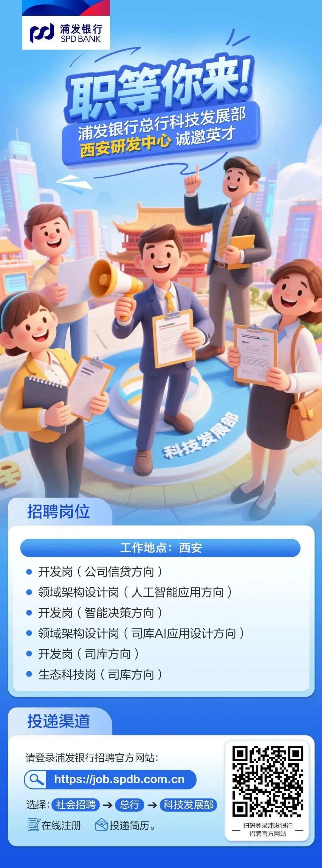 银行招聘-浦发银行总行科技发展部西安研发中心招聘启事