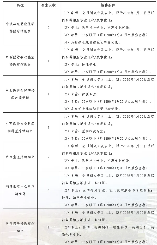 自贡市第一人民医院招聘医疗辅助岗人员公告
