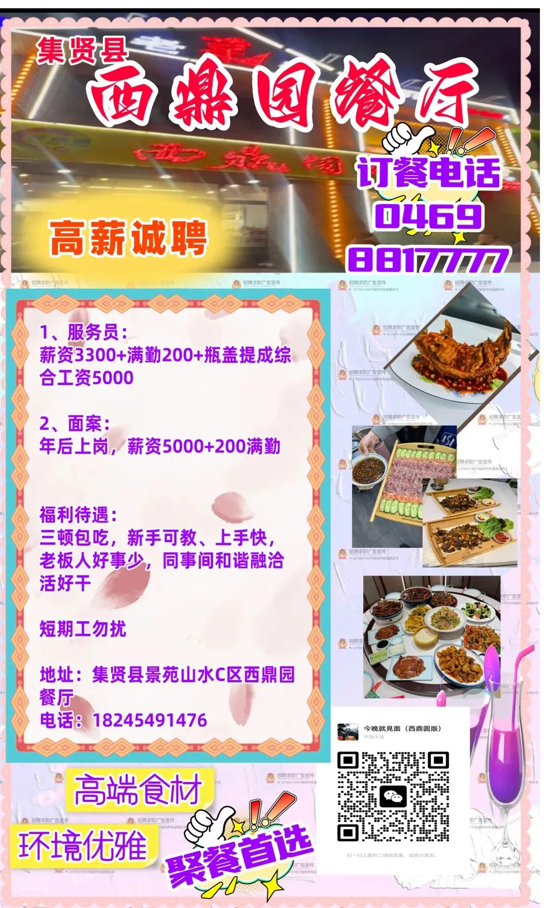 ⛳️集贤县宴渔坊美蛙鱼火锅招聘: