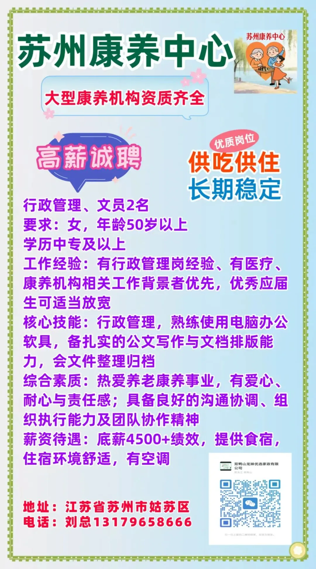 要求:性格开朗,身心健康,责任心强,沟通能力强,年龄35–48岁之间