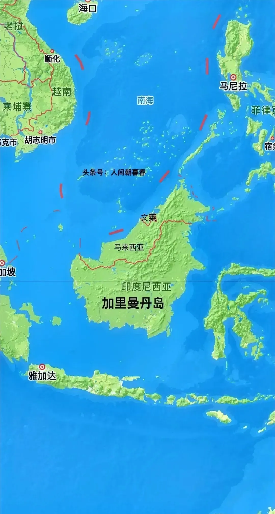 加里曼丹岛(中文叫婆罗洲)是世界第三大岛,却被三个国家分着吃:印尼占了大头,马来西亚占了北边两块,还有一个弹丸小国,文莱,靠海边缩着。