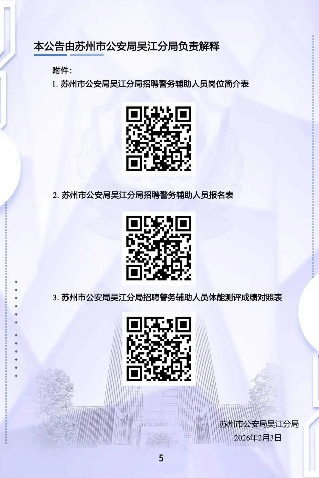 >苏州市公安局吴江分局招聘