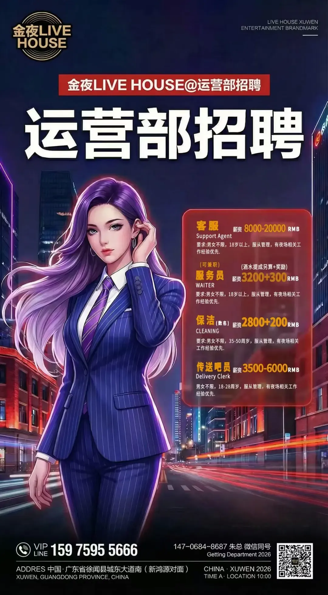 徐闻金夜 livehouse招聘以下岗位: