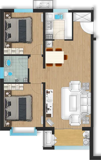 两个卧室布局合理,既可作为温馨卧室,也可将一室灵活改造为书房、衣帽间或影音室,实现对生活的无限想象。