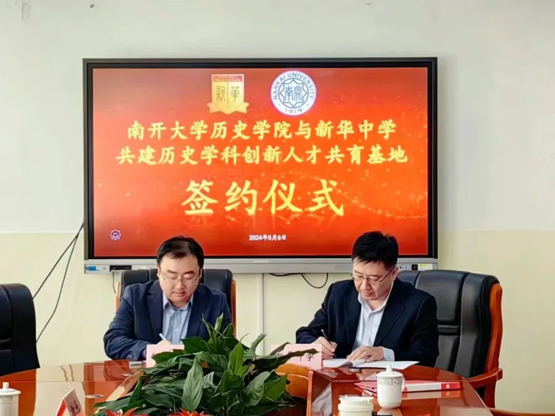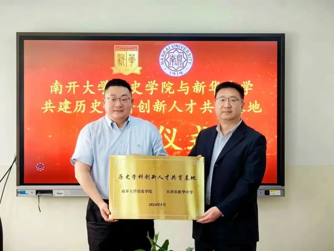 5月7日,南开大学历史学院与天津市新华中学就历史学科创新人才培养签署《南开大学历史学院与新华中学共建历史学科创新人才共育基地协议》,并隆重举行了“历史学科创新人才共育基地”揭牌仪式。