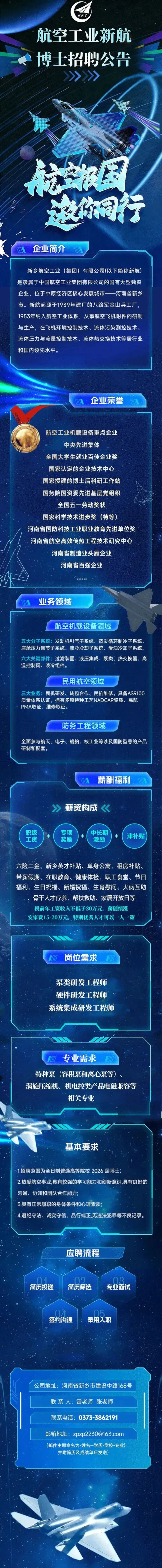 >【新乡招聘】六险二金 人才补贴 公寓食堂 航空工业新航集团招聘公告