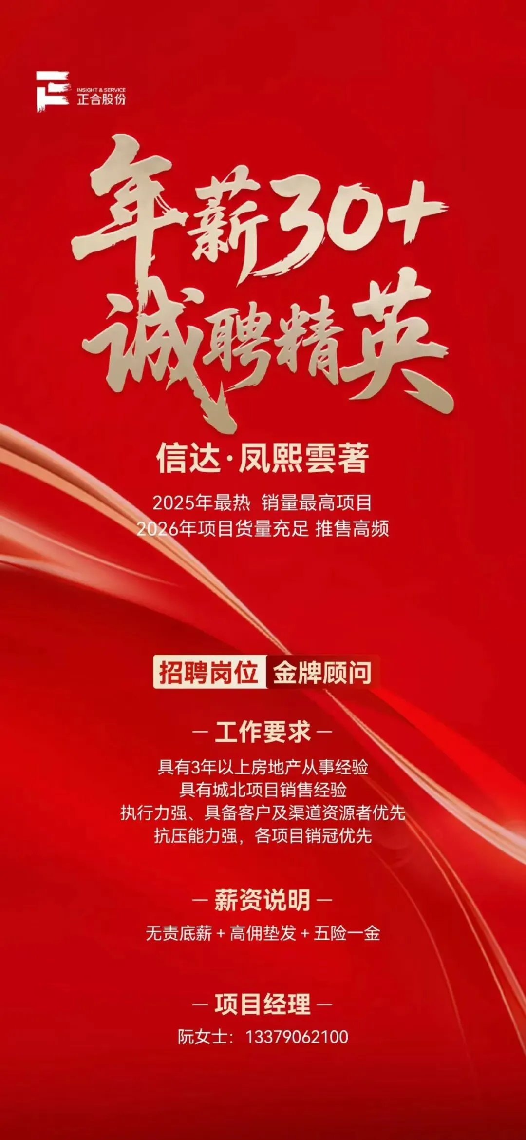 要求:40岁以内,统招大专以上学历,三年以上地产/产业类营销/销管经验。