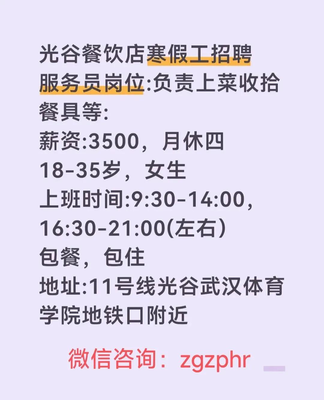 >光谷餐饮店寒假工招聘