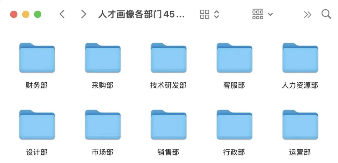 本套资料包合计45份人才画像模板,覆盖10大部门,包含人力资源部、财务部、行政部、销售部、市场部、客服部、技术研发部、运营部、设计部、采购部。