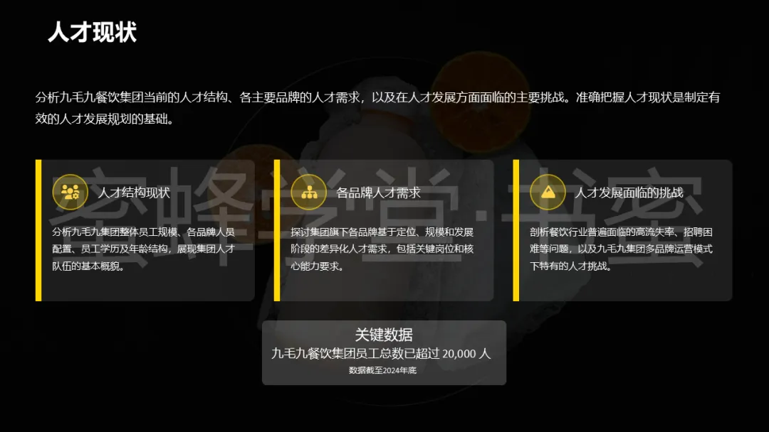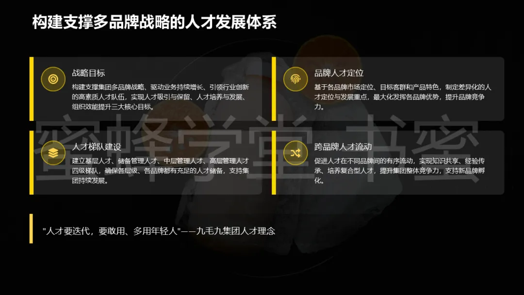 最后,关于九毛九集团如何具体实施差异化人才定位、构建人才梯队、运作跨品牌流动机制、设计职业发展通道以及落地各项激励保留策略等细则,我们制作了一份详实的ppt资料——《多品牌连锁餐饮的人才发展规划》,以九毛九餐饮集团为案,一共39页。同时,还配套有8分钟的音频播客导读~