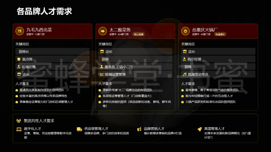 不同餐饮品牌有着截然不同的定位与风格,对人才的需求自然呈现出多元化的特点。比如 “太二” 洋溢着年轻潮流文化,“九毛九” 承载着传统技艺传承,“怂火锅” 则致力于营造活力氛围,这些差异都使得人才培养与管理变得更为复杂。