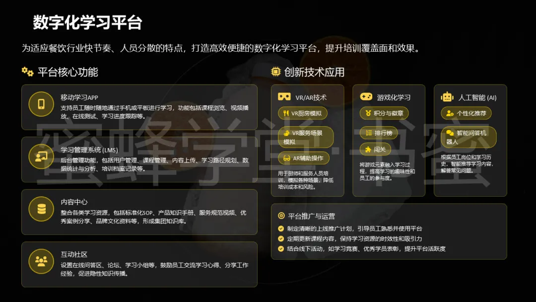 内部讲师团则将组织的智慧沉淀,通过授课的方式分享给全体员工,进一步提升团队的整体素质。
