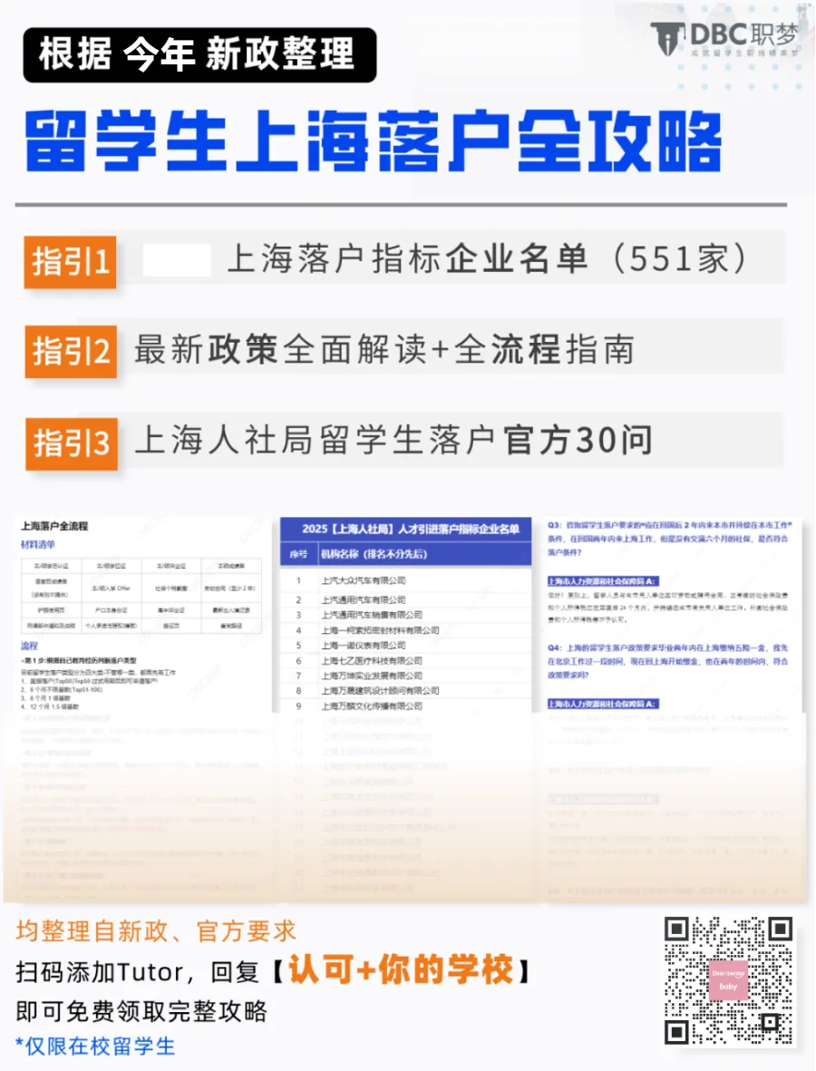 这份留学生上海落户攻略all about留学生,所有内容根据新政基础,整理的关键细节问答,扫码回复【上海+你的学校】即可获取完整版。