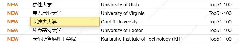 🆕弗吉尼亚大学(QS第297名)、卡迪夫大学(QS第186名)等排名靠后的院校,都是今年的新增院校;