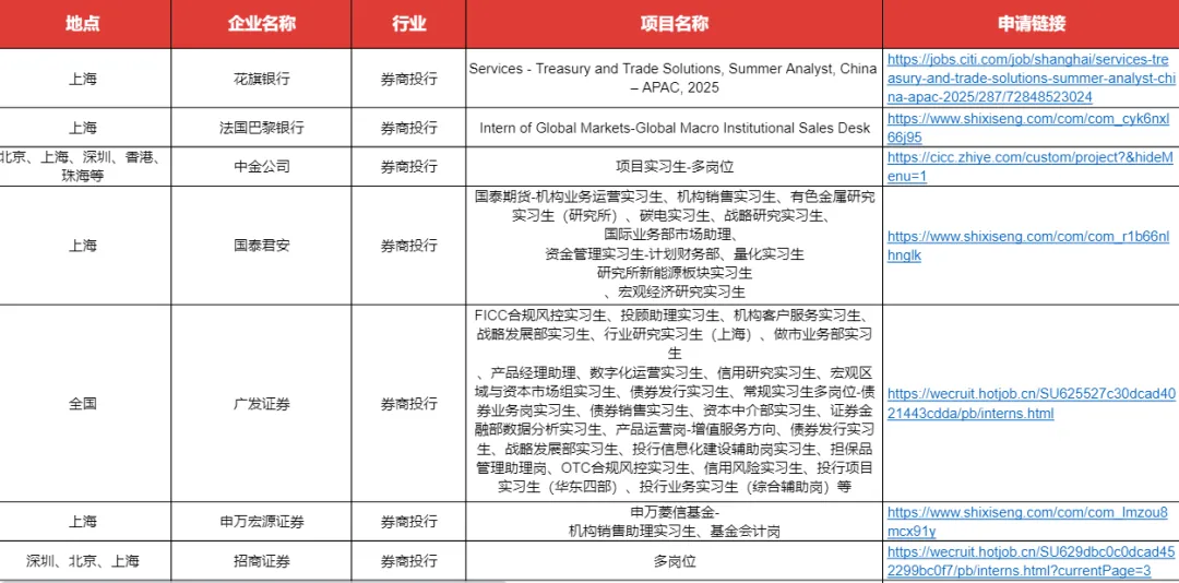 🌇福利1 :正在开放·上海名企全职/实习开岗信息
