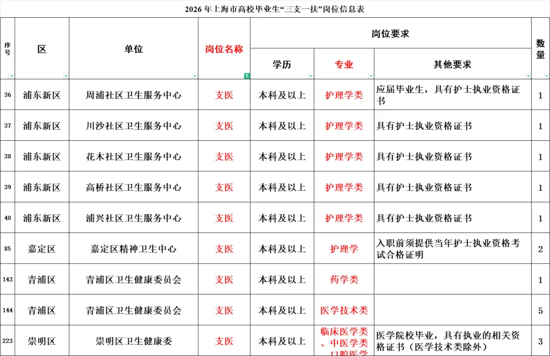 1.2026年上海市高校毕业生“三支一扶”岗位信息表